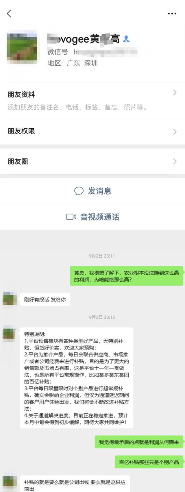 来自安徽合肥的毕女士也反映,开始时,她只是发起多人成团,一起预购DC农业销售的水果、蔬菜。