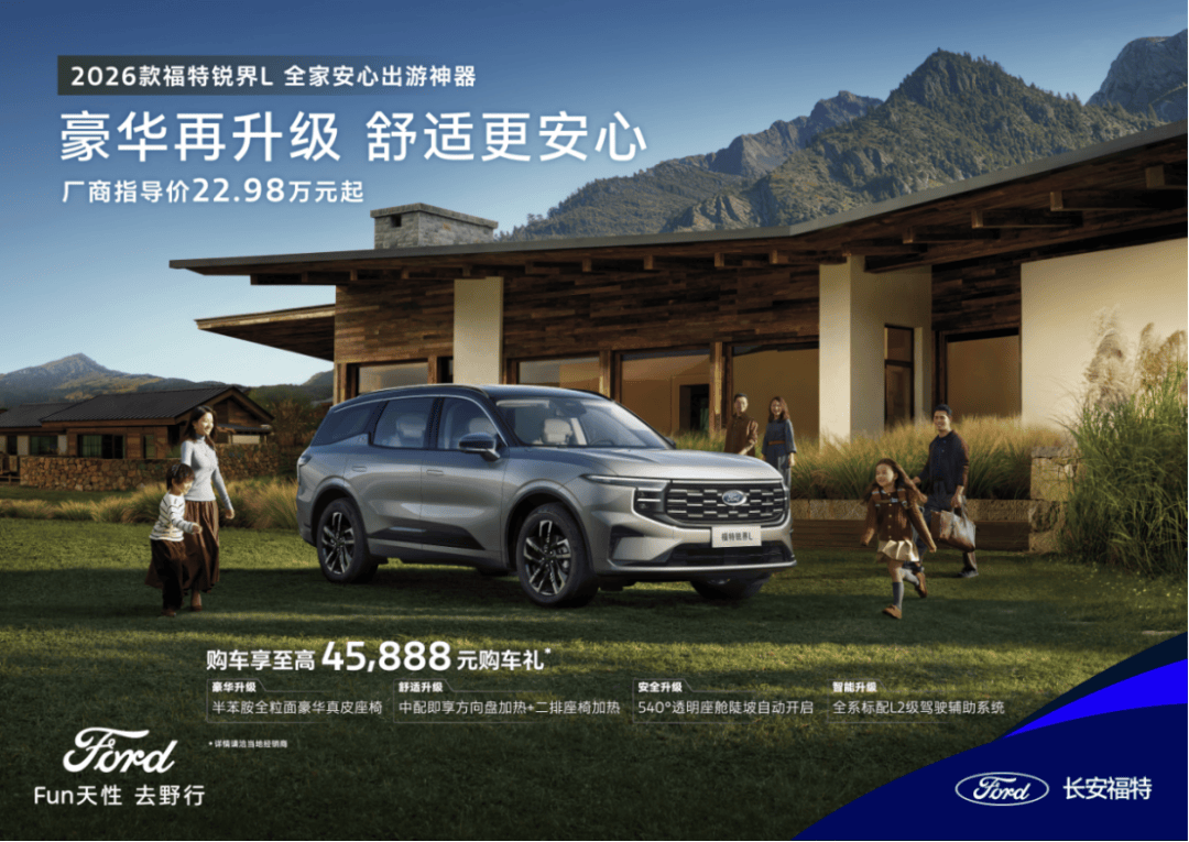 一直以来,福特锐界L不断倾听用户真实用车需求,致力于为中国家庭提供更舒适的驾乘体验。此次2026款福特锐界L上市焕新,带来了豪华、舒适、安全和智能四大升级,主力车型,加配不加价。