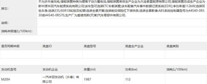 新车将继续提供燃油和智能电混双擎两种动力。燃油版换装2.0L自然吸气发动机,最大功率126kW。智能电混双擎版则配备1.8L自然吸气发动机和镍钴锰酸锂电池,百公里油耗可达4L级,能耗媲美主流插混车型。